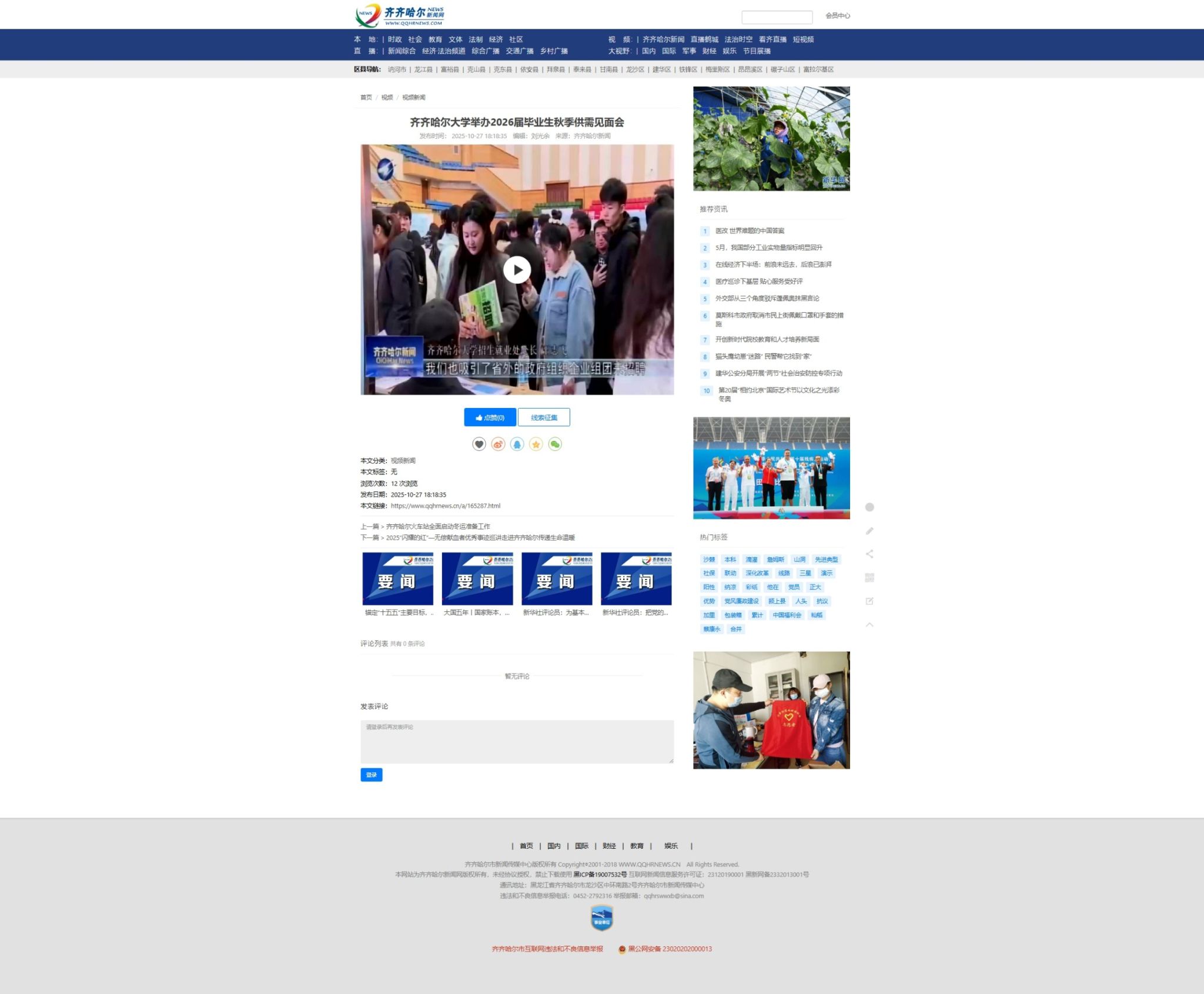 黑水琳瑯映鶴城,寒域遺珠綻芳華。10月29日,全省公共圖書館領(lǐng)導(dǎo)及我校師生代表400余人齊聚日新大廈,共同參與黑龍江省“觸摸千年文脈,賡續(xù)文明薪火——古籍保護(hù)課程進(jìn)校園”齊齊哈爾大學(xué)專場活動。活動由國家圖書館(國家古籍保護(hù)中心)、黑龍江省文化和旅游廳主辦,黑龍江省圖書館(黑龍江省古籍保護(hù)中心)、黑龍江省高等學(xué)校圖書情報工作委員會、齊齊哈爾市文化廣電和旅游局、齊齊哈爾大學(xué)承辦。第十四屆全國政協(xié)委員、國家...